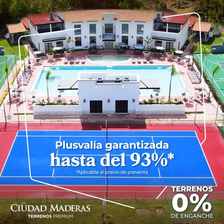 Invierte en terrenos premium con beneficios únicos: enganche desde el 0%, crédito directo sin intermediarios y una plusvalía histórica del 93% anual. Aprovecha esta oportunidad para asegurar tu inversión en las mejores ubicaciones de México.